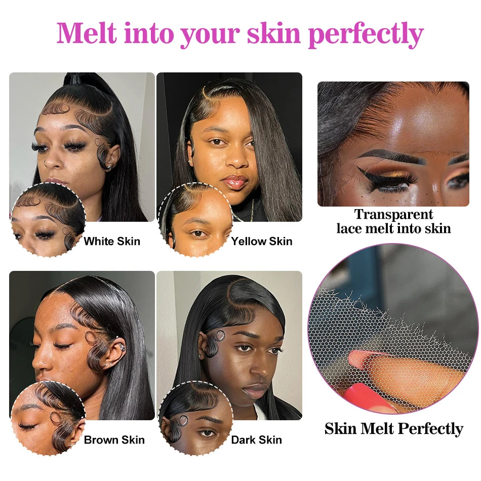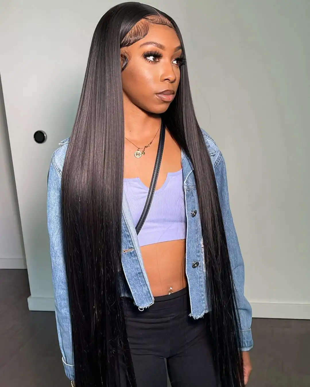 100% Human Hair 13x4 Bone Straight HD Lace Front Wig – Premium Quality Brazilian Hair Experience unparalleled versatility with this premium human hair lace front wig, crafted from authentic Brazilian hair for a natural appearance and exceptional durability. Available in multiple configurations—13x4, 13x6, and 5x5 closure options—this wig accommodates various styling preferences and installation methods. The bone-straight texture delivers a sleek, polished finish that transitions seamlessly from professional settings to casual wear. Extended length options ranging from 30 to 40 inches provide substantial styling flexibility, allowing you to experiment with different looks without compromising hair integrity. HD lace technology ensures an undetectable hairline that blends flawlessly with your natural skin tone, while the glueless construction simplifies application and removal, reducing potential damage to your natural hair. The lace material is breathable and lightweight, promoting scalp comfort during extended wear. This wig represents an investment in quality—100% human hair resists tangling better than synthetic alternatives and responds to heat styling tools, enabling