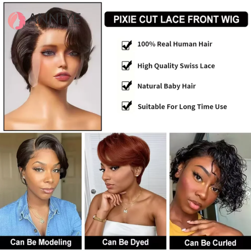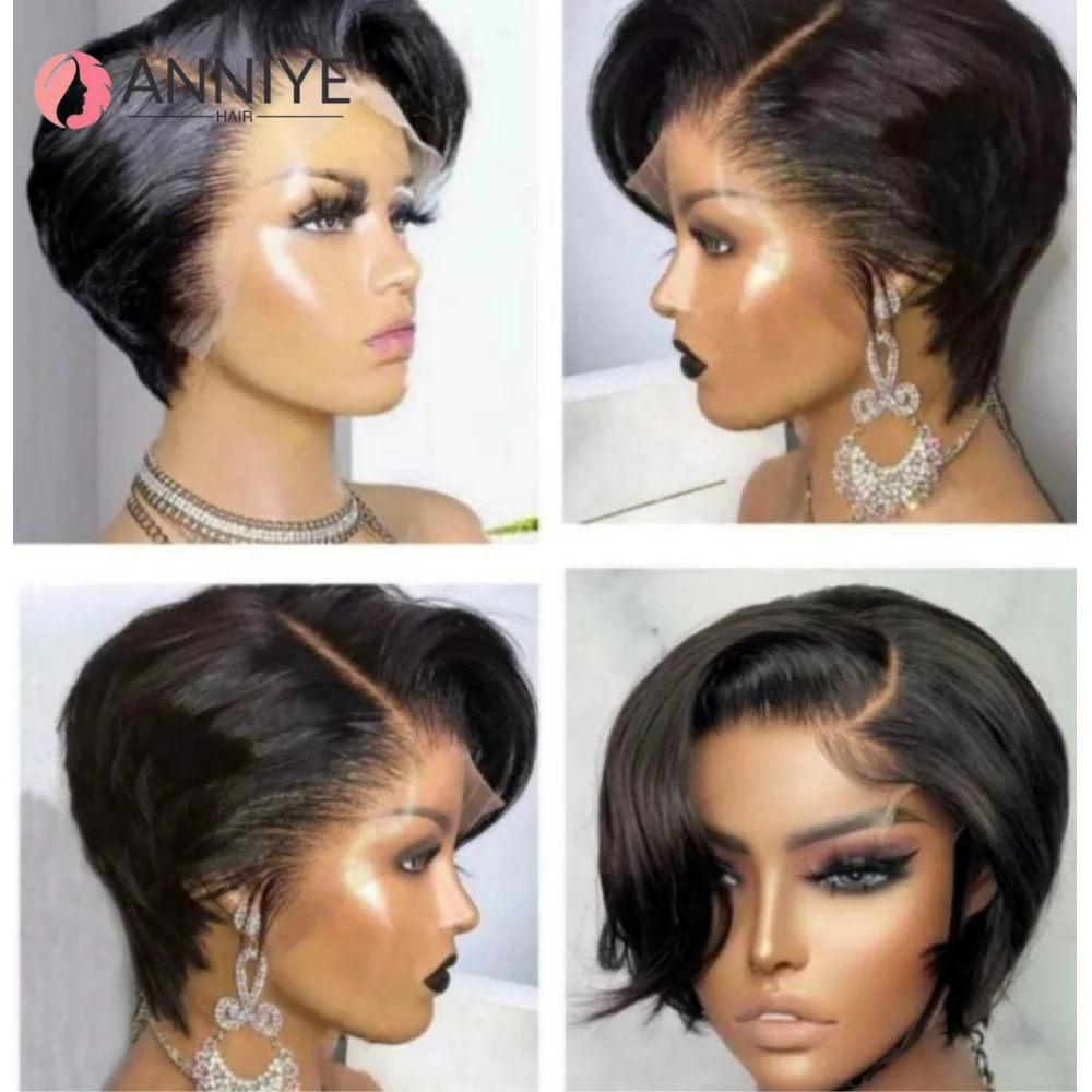 180% Pixie Cut Short Bob Wig Bone Straight Brazilian Hair Pixie Cut Wig Side Part 13x4 Hd Transparent Lace Front Human Hair Wigs