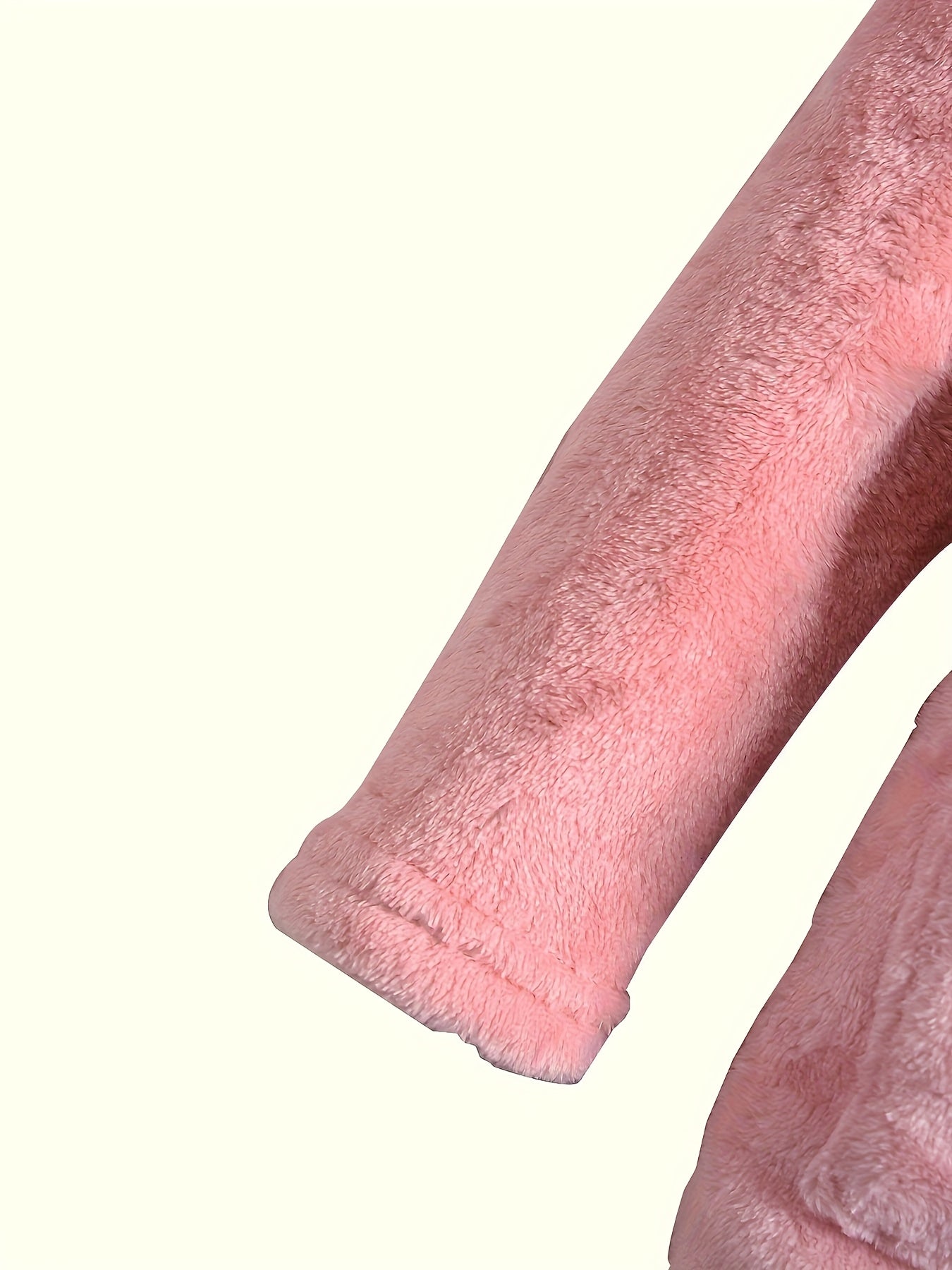 This girls' hooded robe features a soft pink knit fabric adorned with whimsical unicorn and heart patterns, offering cozy warmth ideal for winter and holiday home wear. Designed with comfort in mind, its non-stretchy material provides a snug fit, while being machine washable for easy care. Perfect for relaxing at home or playful moments, this robe combines practicality with a charming design that keeps your child comfortable and stylish.