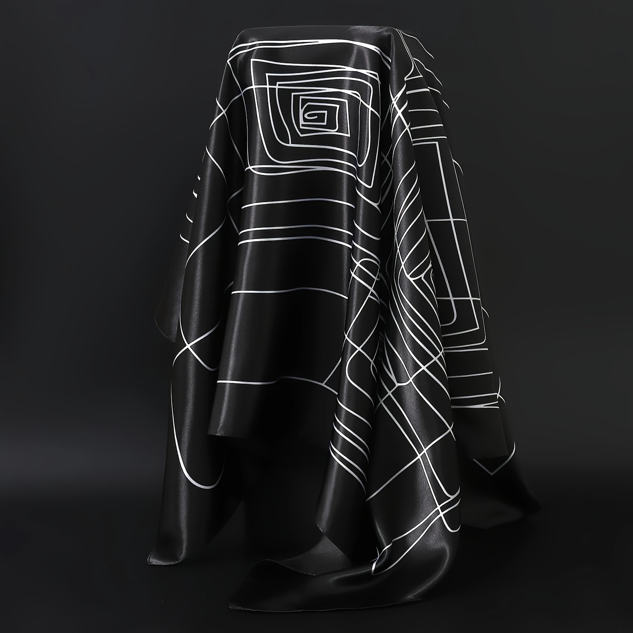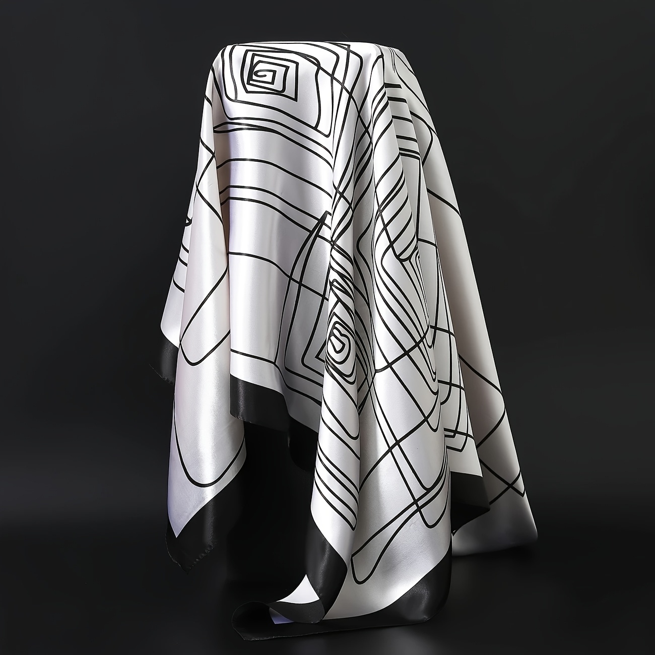 Elegant Black & White Printed Square Scarf - Luxury Polyester, Stylish Thin Headband