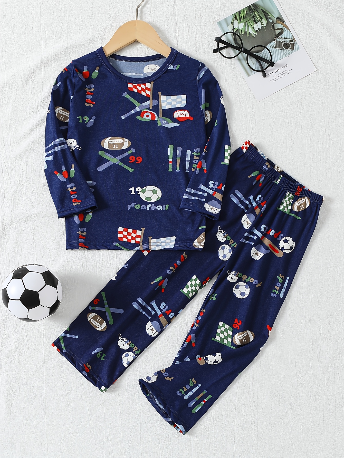A Set of Two Summer Pajamas for Boys, Featuring Baseball And Soccer Letter Prints, Designed for Older Children And Toddlers. This Casual And Loose-Fitting Homewear Is Suitable for Spring And Autumn, Made of Soft And Breathable Fabric. These versatile pajama sets combine comfort with playful design, offering two coordinating options in a single purchase. The loose-fitting silhouette ensures unrestricted movement during sleep and active play, while the breathable fabric composition promotes optimal temperature regulation throughout the night. The baseball and soccer-themed letter prints appeal to young sports enthusiasts, making bedtime more engaging for children. Engineered for durability and easy care, these pajamas maintain their softness through repeated washing. The thoughtful design accommodates growth spurts, providing extended wearability across seasons. Ideal for everyday sleepwear or casual loungewear, this set delivers practical value for families seeking quality basics that balance style with functionality.