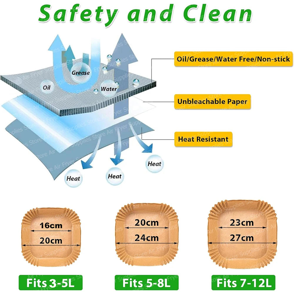 Air Fryer Baking Paper Square Parchment Paper Liners for Ninja/Cosori/Instant Pot 3-12L Airfryer