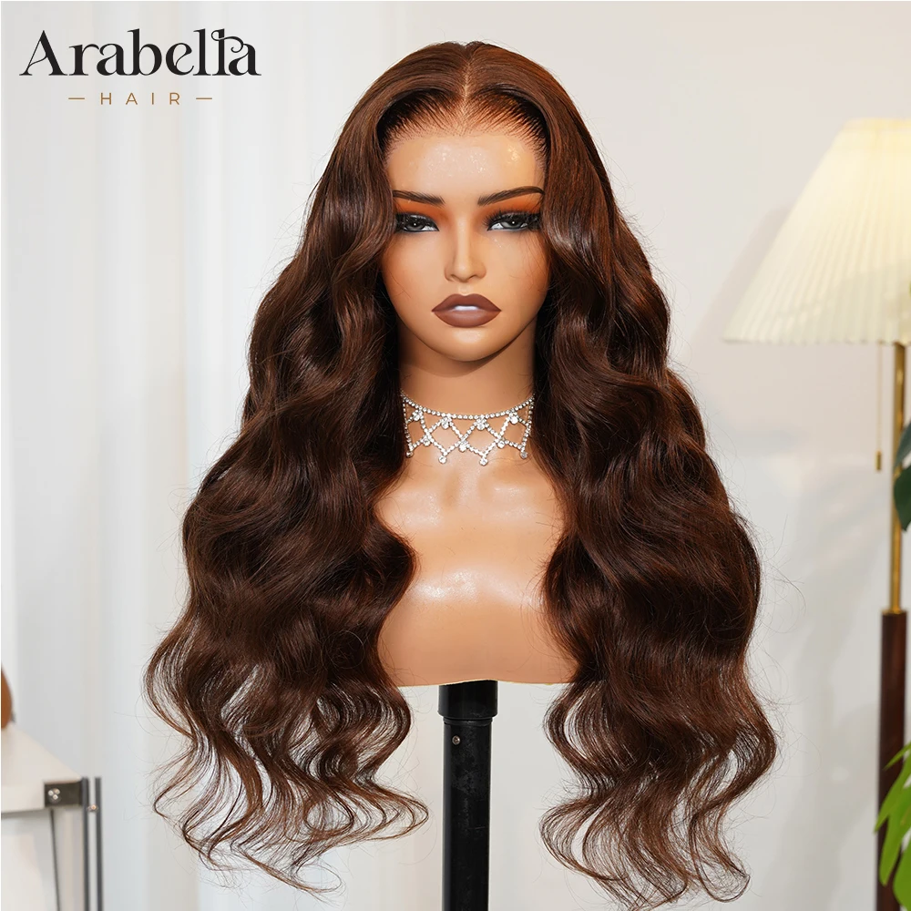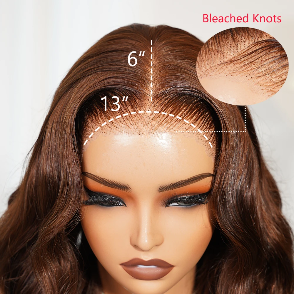 ARABELLA Hair 13x6 Wear and Go Chocolate Brown Glueless Wig Body Wave Lace Front Wigs With Drawstring Bleached Knots Pre-Plucked
