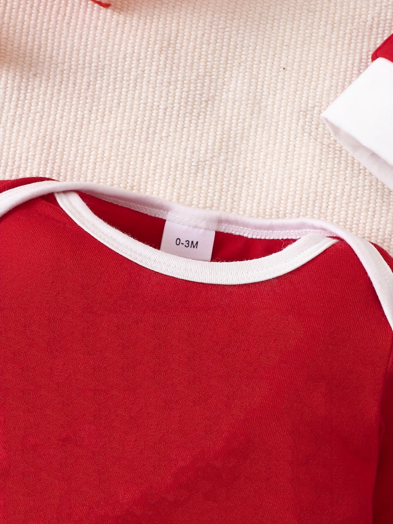 Dress your little one for the festive season with this charming Christmas onesie romper. Featuring a cozy hood-like collar and adorable Santa Reindeer and Rudolph prints, it offers both warmth and holiday spirit. The long sleeves provide extra comfort, while the snap-fit design ensures easy diaper changes. Crafted for durability and hand washability, it is perfect for outdoor winter outings and memorable first celebrations.