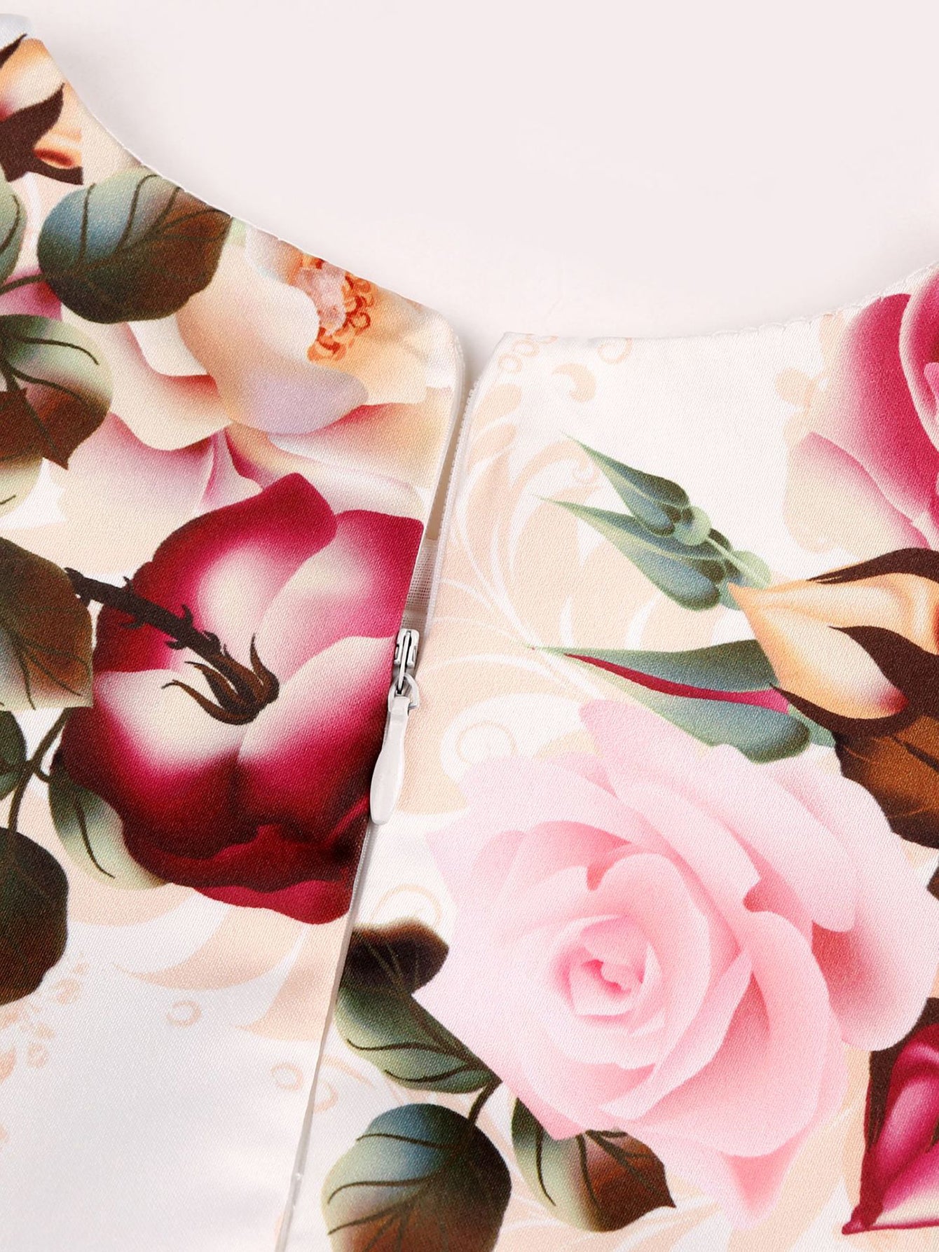This elegant A-line party dress for girls features a delicate rose floral print in soft pink and beige tones, perfect for special occasions like weddings, Easter, and birthdays. Designed with ruffled short sleeves and a slim-fit waist enhanced by a charming ribbon bow, it offers both style and comfort. Made from machine-washable fabric suitable for all-season wear, this dress combines practical care with refined appeal, ensuring your child looks effortlessly polished at any event. Ideal for ages 3 and up.