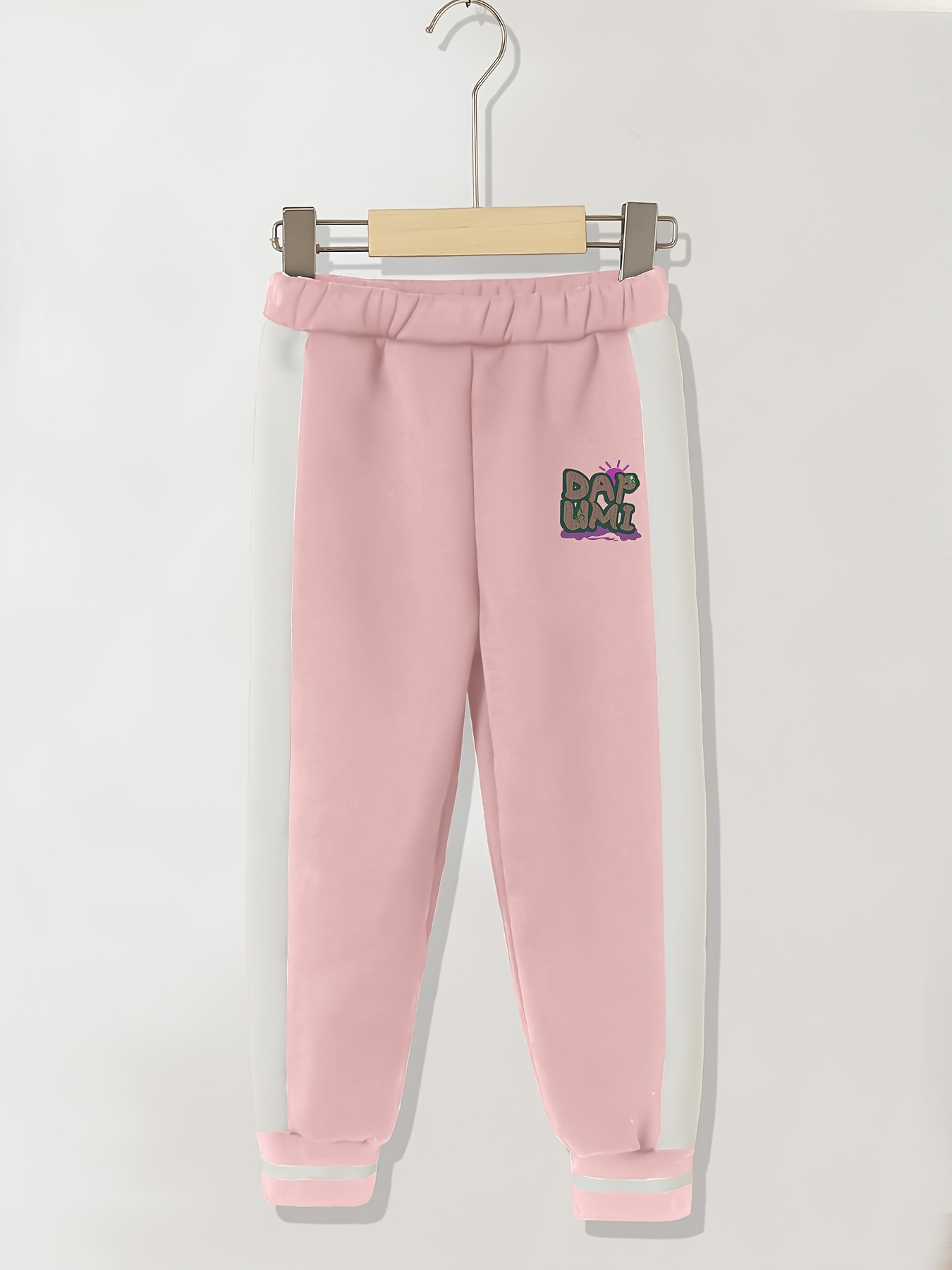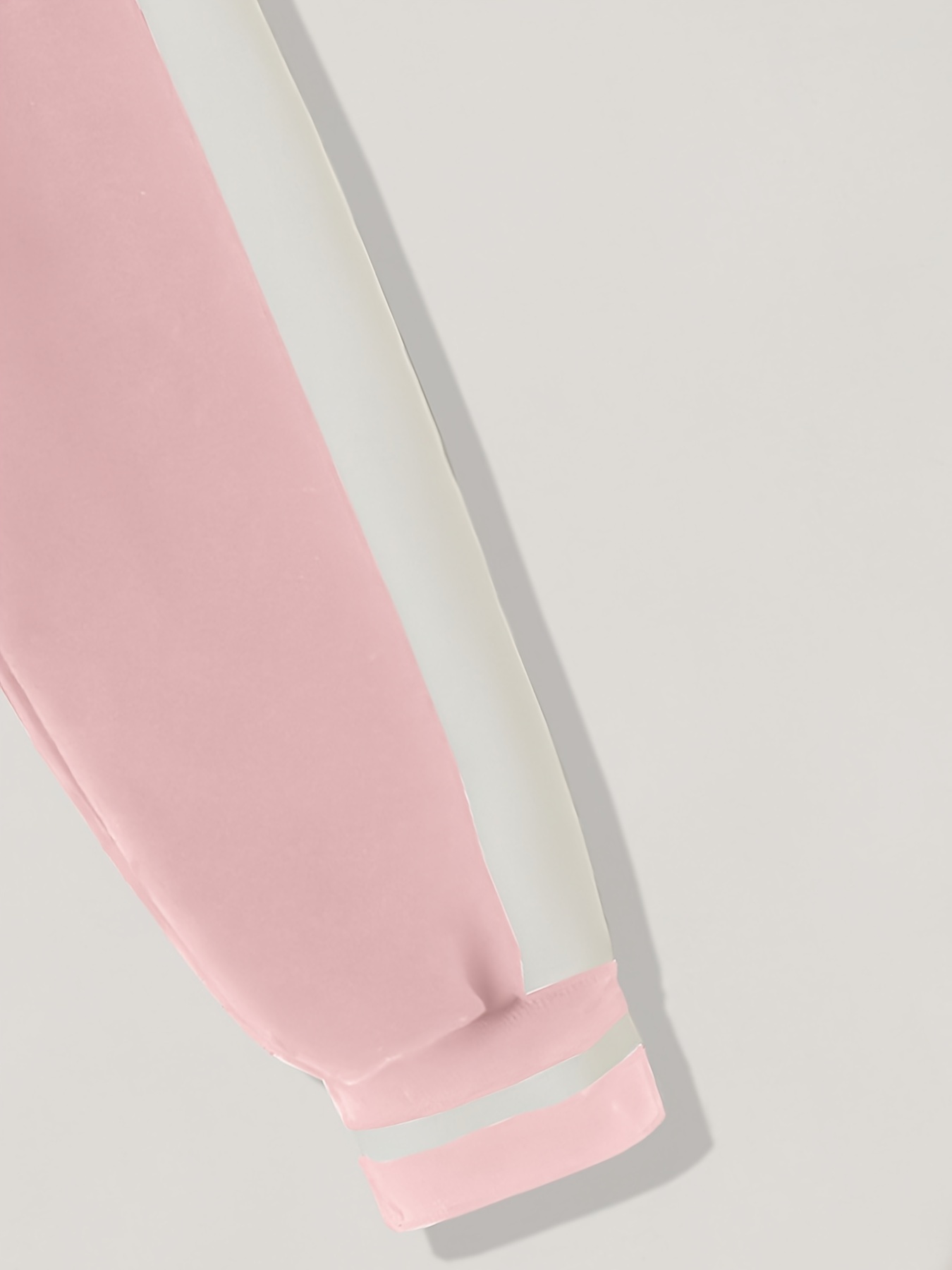This cozy 2-piece girls' varsity jacket and jogger set combines style and comfort with its pink base and blue accent details. Crafted from a polyester blend, the fleece lining ensures warmth during cooler days, while long sleeves and a button-up baseball collar provide a classic look. Designed for durability and easy care with machine washable fabric, this set is perfect for school activities and outdoor sports, offering practical comfort and a fashionable edge for active girls.