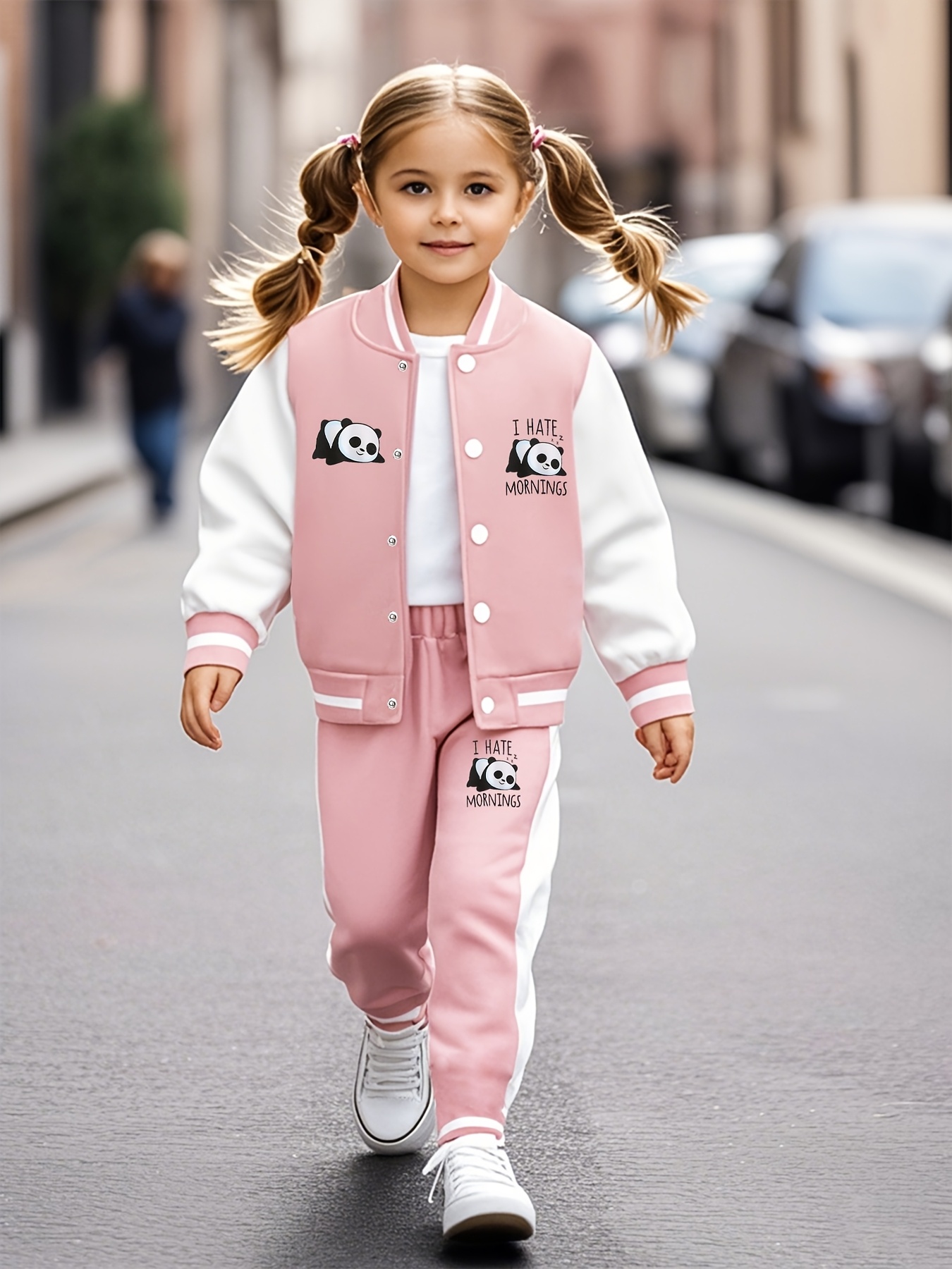 Cozy 2pcs Girls' Varsity Jacket & Jogger Set