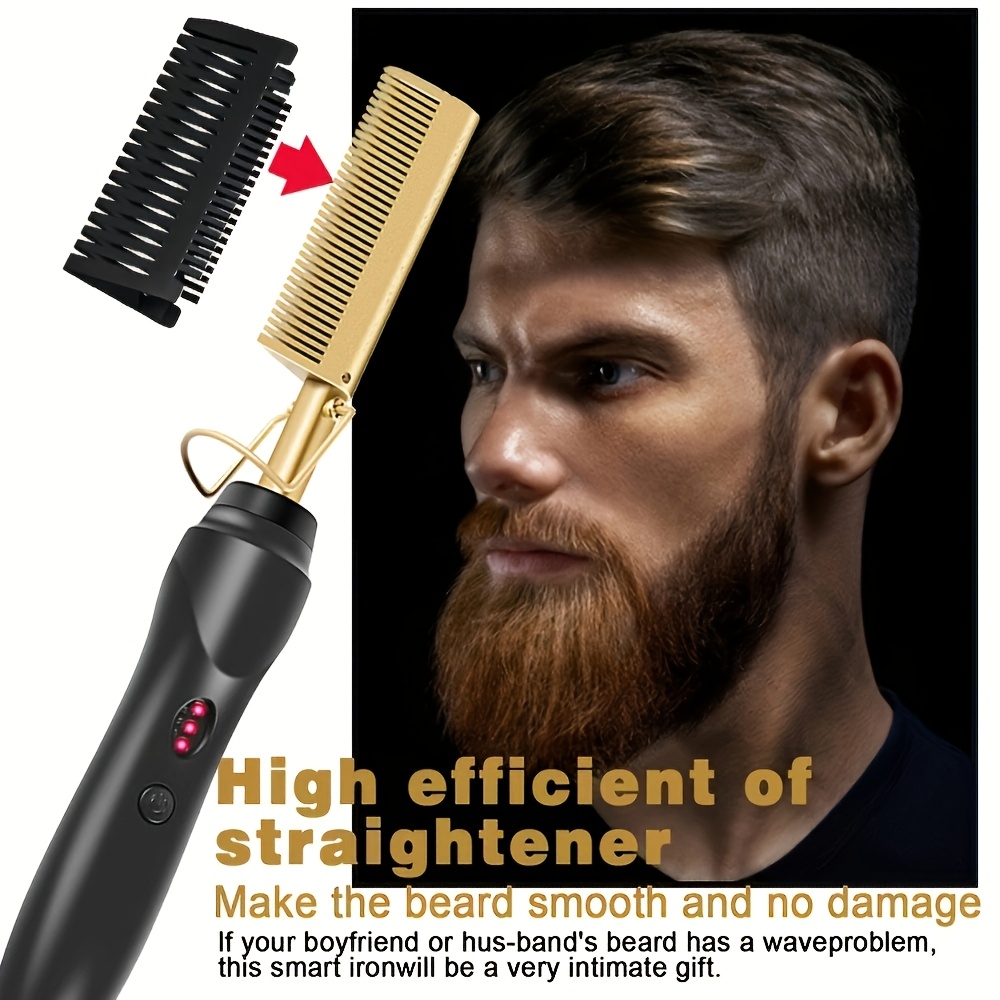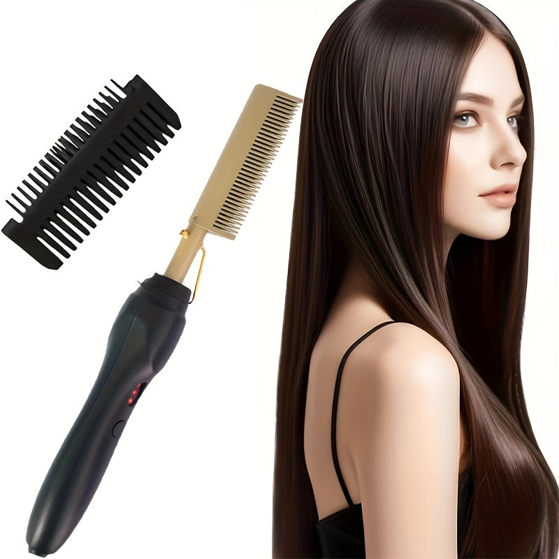 # EU Standard Golden Straight Hair Comb with Dual Temperature Control for Unique Hairstyling This professional-grade hair straightening comb combines European engineering standards with innovative dual temperature control technology. The sleek golden finish delivers both aesthetic appeal and durability, while the precision-engineered teeth glide smoothly through hair without snagging or causing breakage. The dual temperature settings allow you to customize heat intensity based on your hair type—lower temperatures for delicate or damaged strands, higher settings for thick or coarse textures. This intelligent approach minimizes heat damage while maximizing styling efficiency and results. Designed for versatility, this comb works equally well for straightening, smoothing, and creating subtle waves. The ergonomic handle ensures comfortable control during extended styling sessions, reducing hand fatigue. Whether you're achieving sleek, polished looks or textured finishes, this tool adapts to your unique hairstyling needs with professional-quality performance.