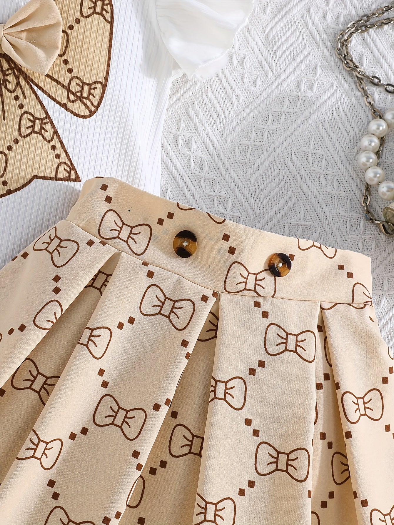 This girls' skirt set features a stylish white and black geometric plaid print, combining a short sleeve top with a charming bow detail and a flattering A-line skirt. Crafted from stretchy fabric, it offers both comfort and freedom of movement, making it ideal for outdoor play and casual summer wear. The playful design balances fashion and functionality, ensuring your child stays cool and trendy during warmer days.