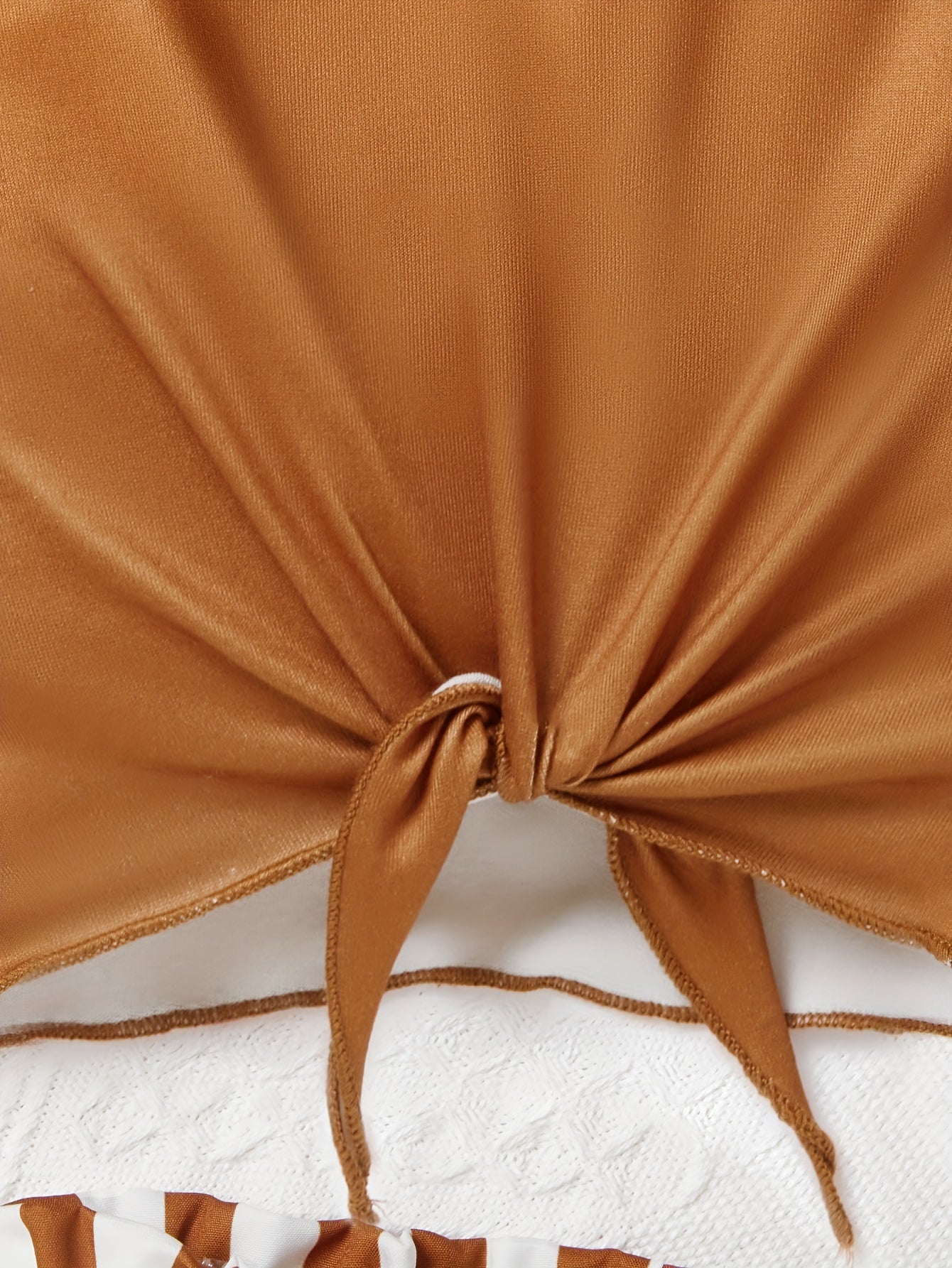 This girls' pink striped shorts and sleeveless top set offers a stylish yet comfortable summer outfit perfect for ages 1 to 8. Crafted from a stretchy polyester blend, it ensures ease of movement during outdoor play. The sleeveless top features a round neckline and a subtle twist detail, adding a touch of sophistication to this casual ensemble. The breathable fabric and playful striped pattern make it ideal for spring and summer wear, combining practicality with charming design.