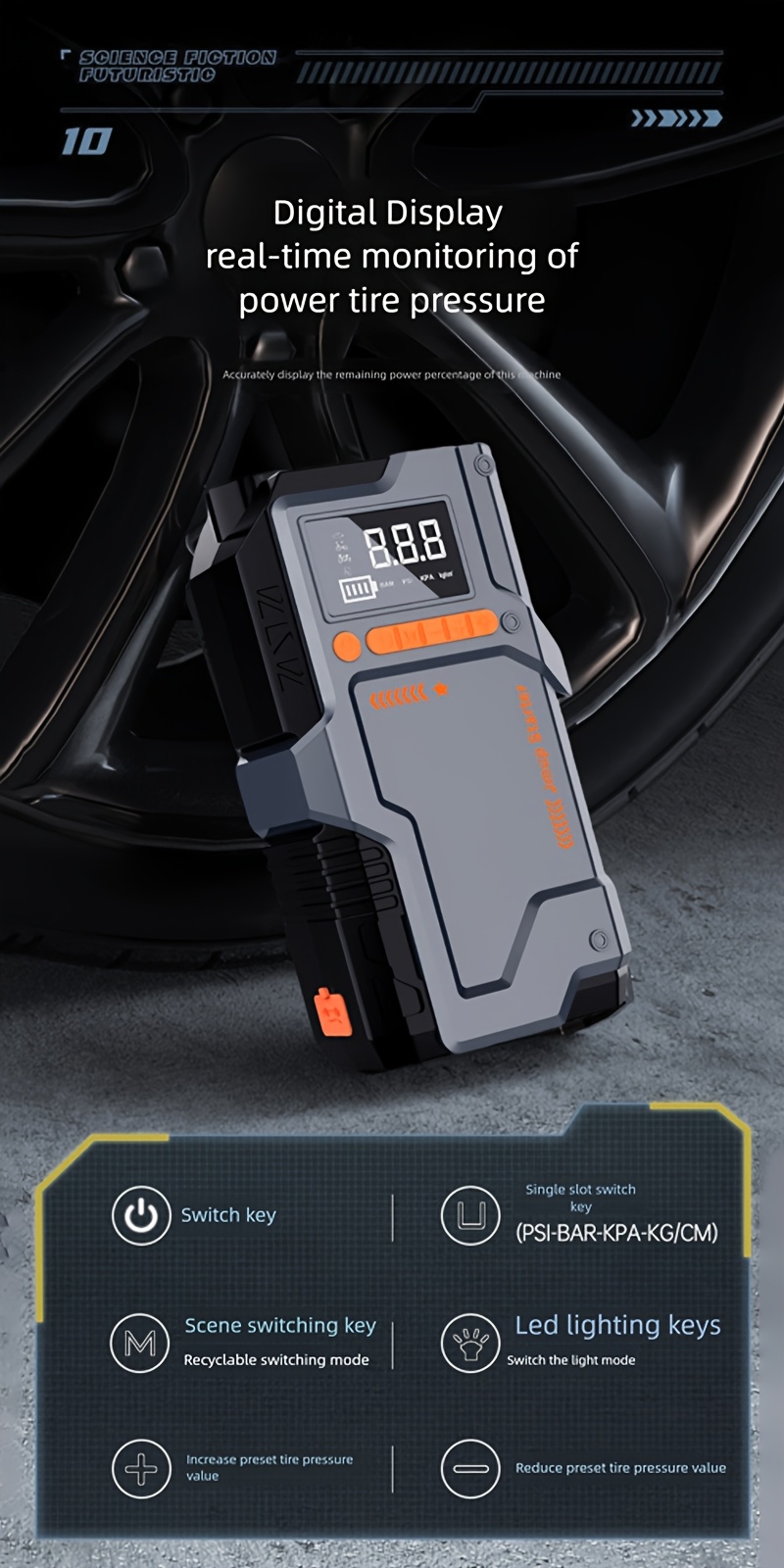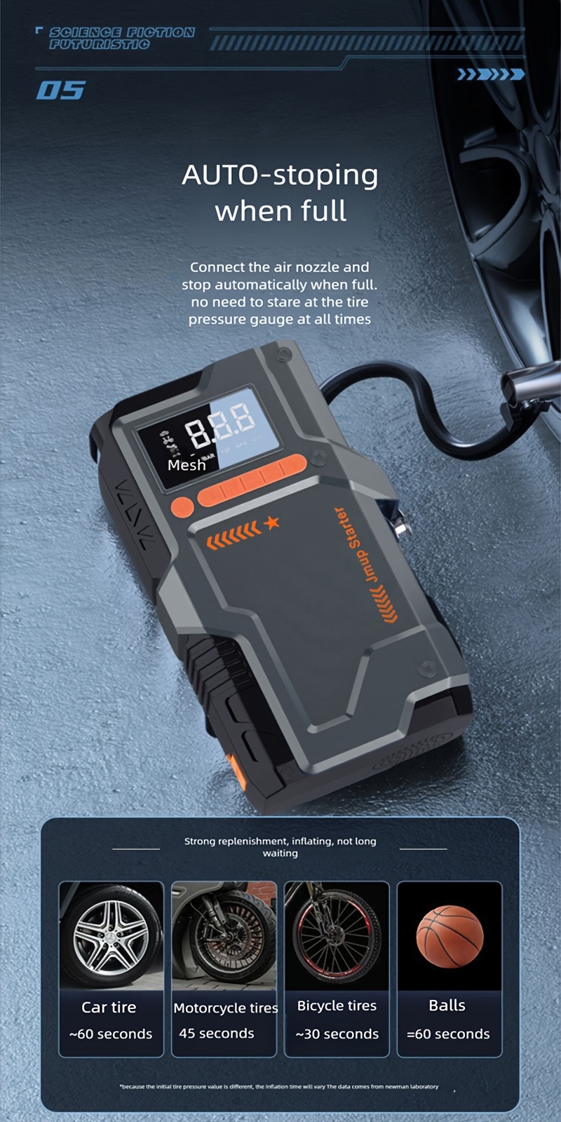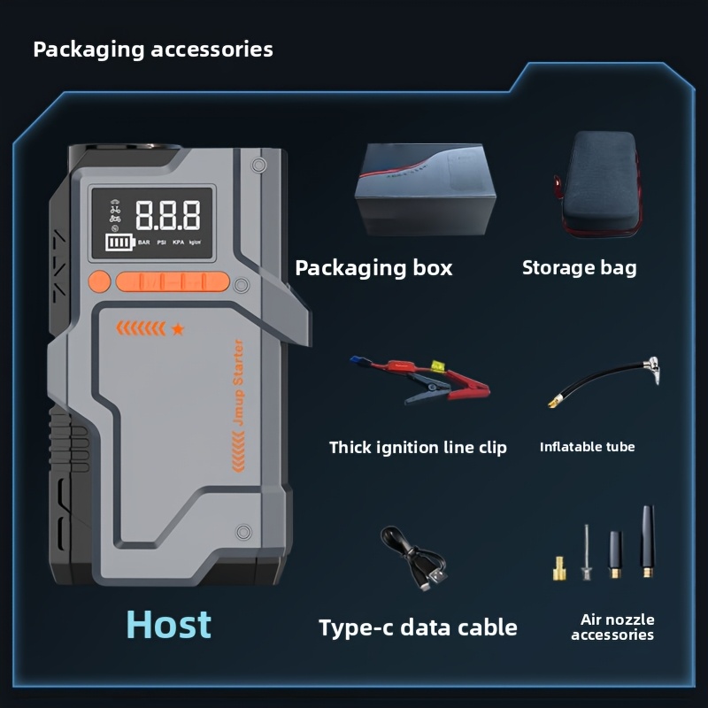 The Heavy-Duty Car Emergency Starter is an essential tool designed for reliable performance in critical situations. Engineered with robust materials, it delivers powerful jump-start capability to quickly revive dead batteries in cars, trucks, motorcycles, and other vehicles. This starter is compact yet sturdy, making it convenient to store in your vehicle without taking up much space. Equipped with safety features such as reverse polarity protection and short-circuit prevention, it ensures secure and worry-free operation. Whether you’re stranded on the roadside or in remote areas, this emergency starter provides peace of mind through dependable power when you need it most. Its user-friendly design allows even those with minimal technical experience to operate it confidently, making it a vital addition to your automotive safety kit.