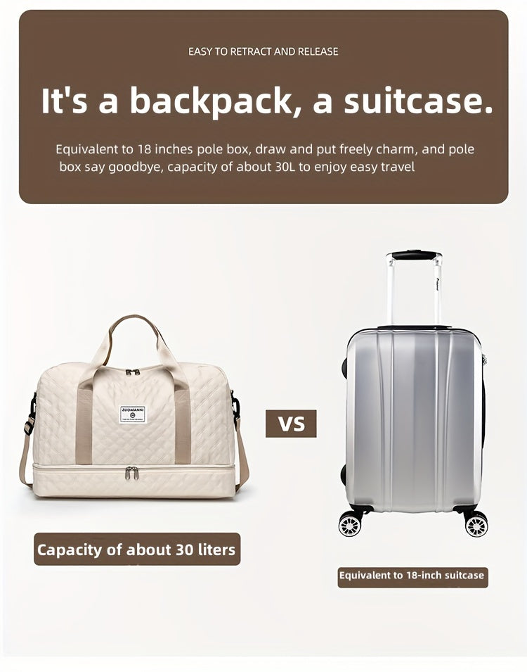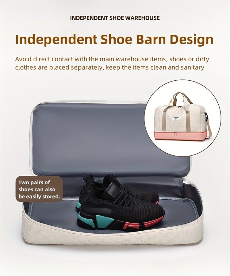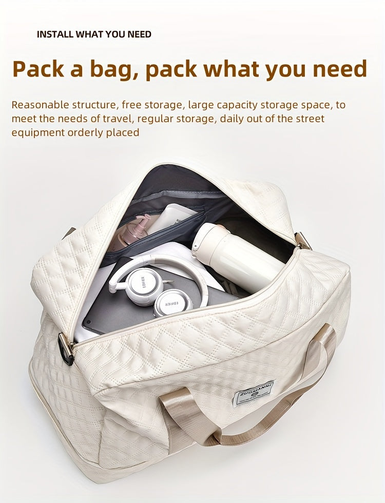 Designed for active women, the Zuomanni Large Capacity Gym Bag offers ample space to organize your gear efficiently. Crafted from durable, lightweight Oxford fabric, it features a quilted texture for a stylish and sophisticated look. The independent shoe compartment keeps your footwear separate and clean, making it ideal for both gym and travel. Combining practicality with elegant design, this bag ensures you stay organized and ready wherever you go.