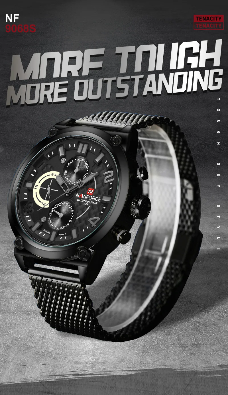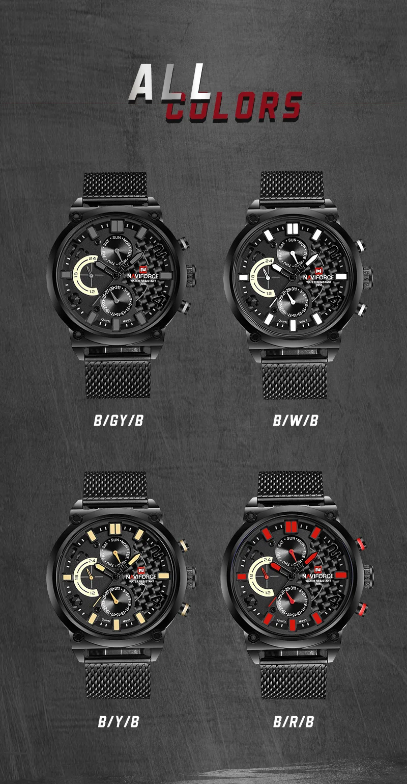 NAVIFORCE Luxury Brand Fashion Casual Watches Mens Full Stainless Watch Mesh Band Business Men Hour Quartz Wristwatch Male Clock