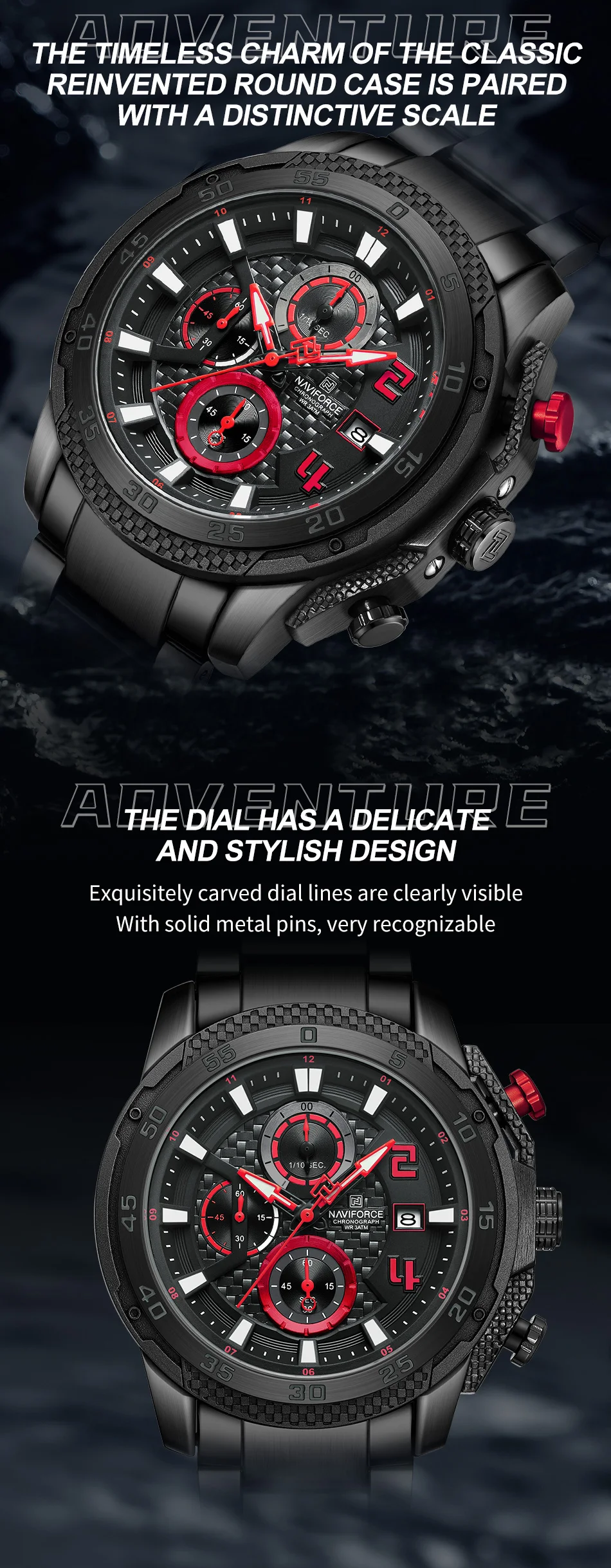 The NAVIFORCE Men Stainless Steel Watch combines precision engineering with contemporary design, delivering a timepiece built for the modern professional. Crafted from premium stainless steel, this watch offers exceptional durability and corrosion resistance, ensuring longevity through daily wear and varied conditions. The robust construction provides reliable timekeeping performance, while the sleek aesthetic transitions seamlessly from boardroom to casual settings. Featuring a sophisticated dial design and quality movement, this watch serves as both a functional accessory and a statement piece. Whether you're managing business commitments or weekend adventures, the NAVIFORCE delivers the dependability and refined style that discerning men expect from a quality timepiece.