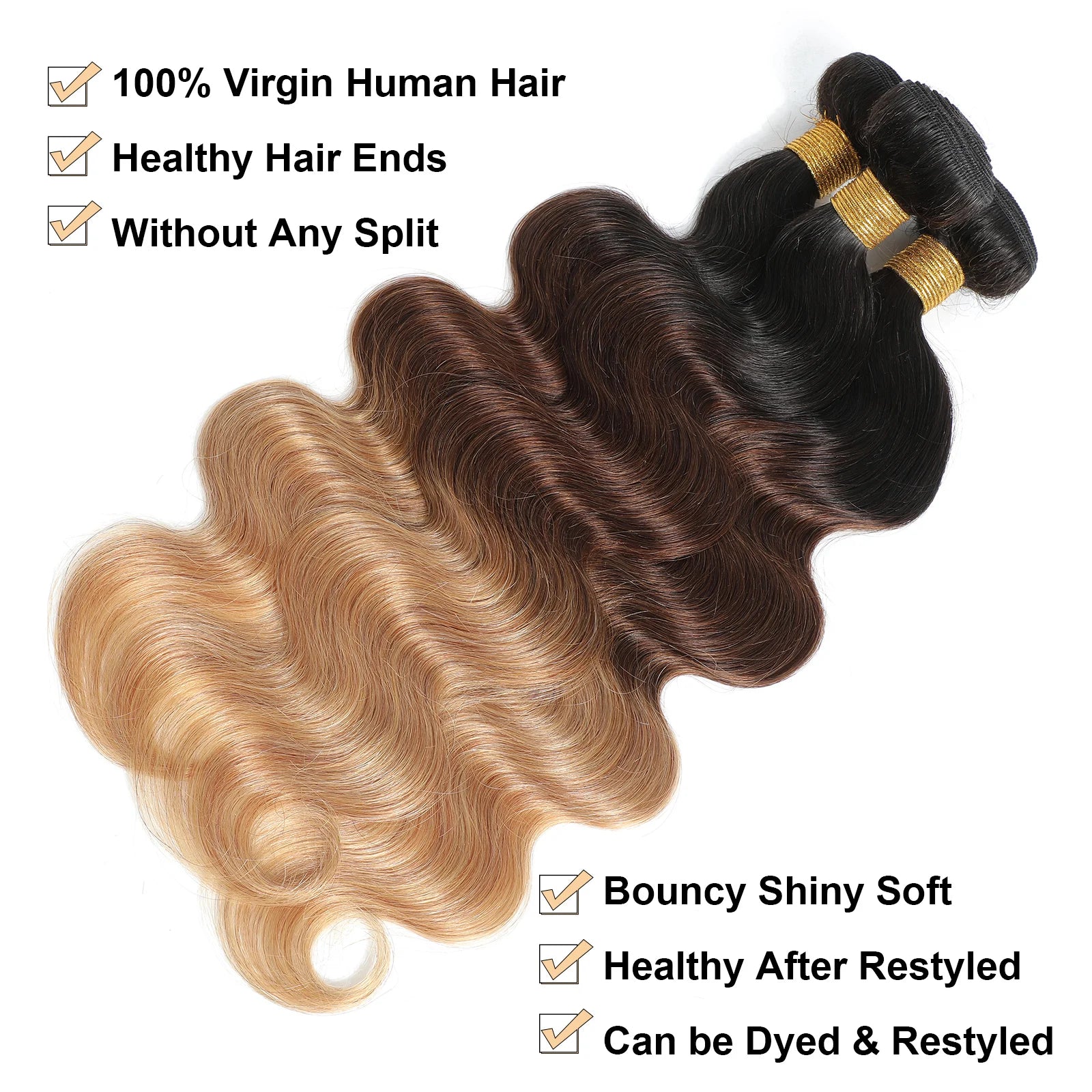 Ombre Color Body Wave Human Hair Bundles with closure 100% Unprocessed Virgin Hair 1b/4/27 Colored Bundles human Hair Extension