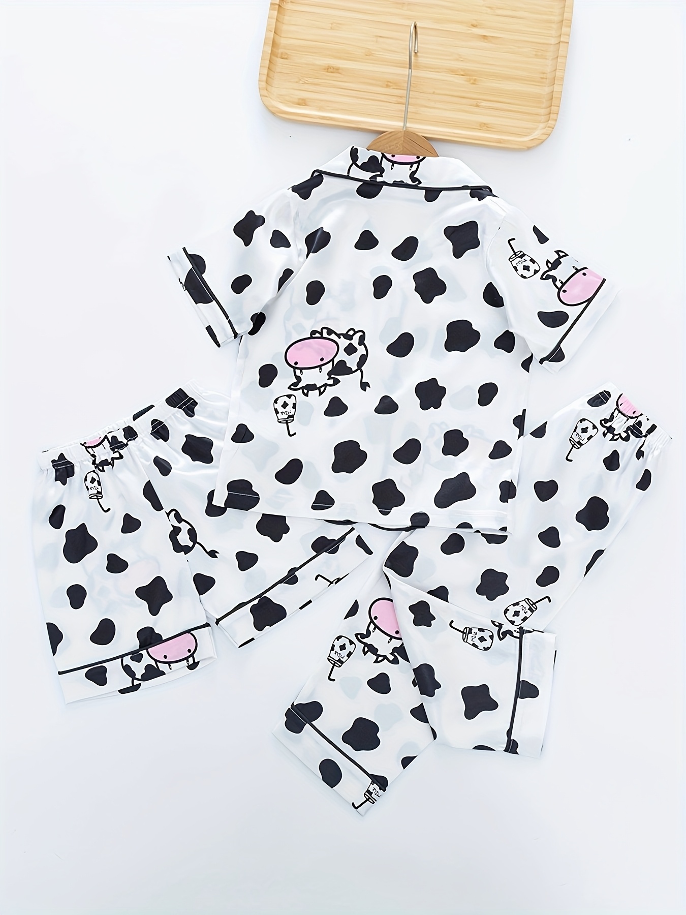 3pcs Girls' Short Sleeve Shirt and Shorts Pajama Set