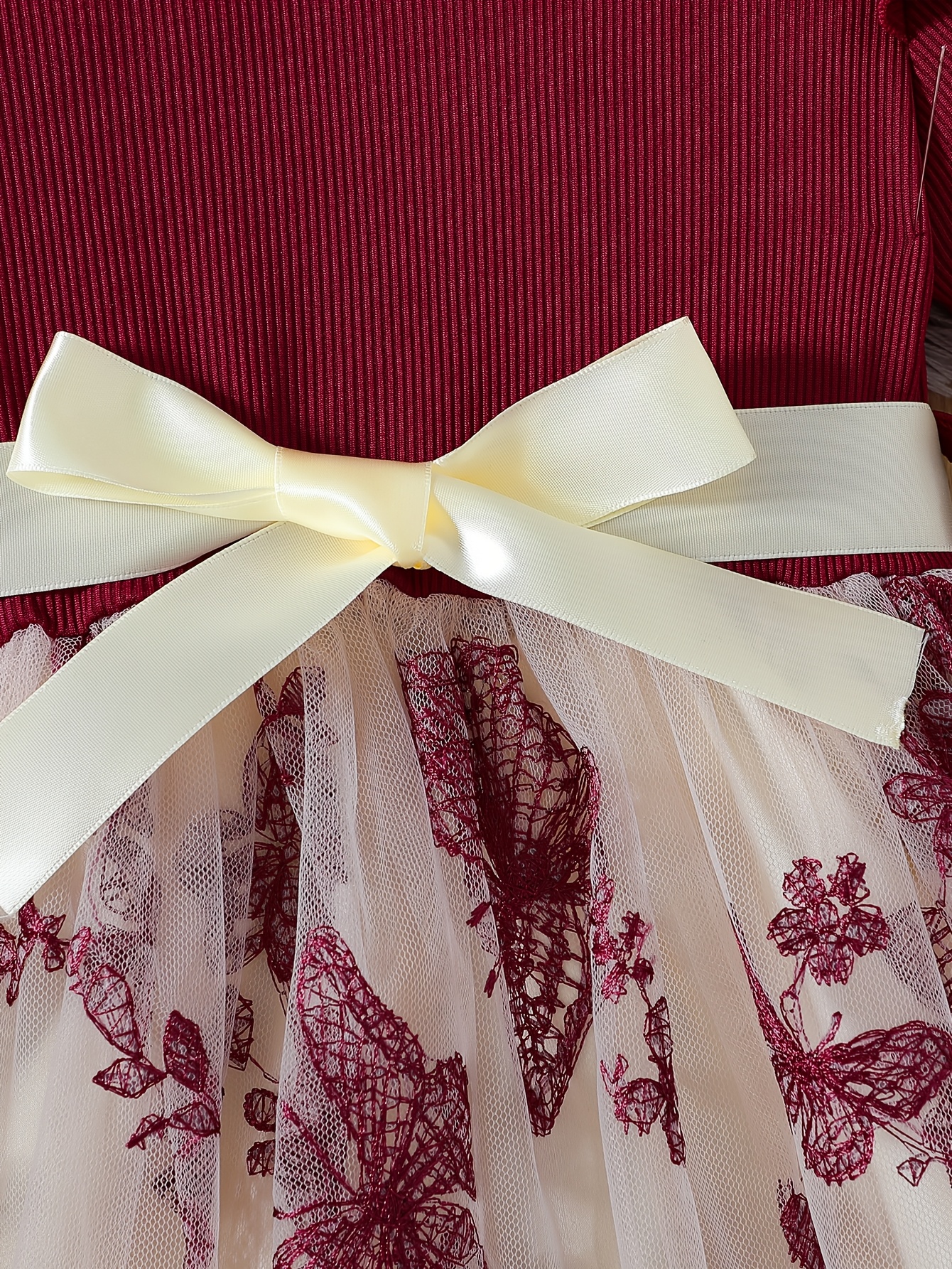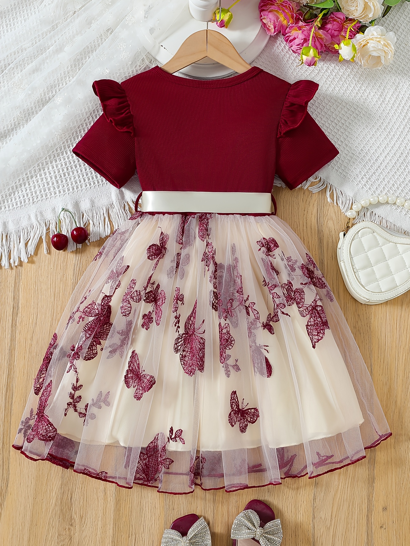 Girls Short Sleeve Bowknot Decor Mesh Tutu Dress