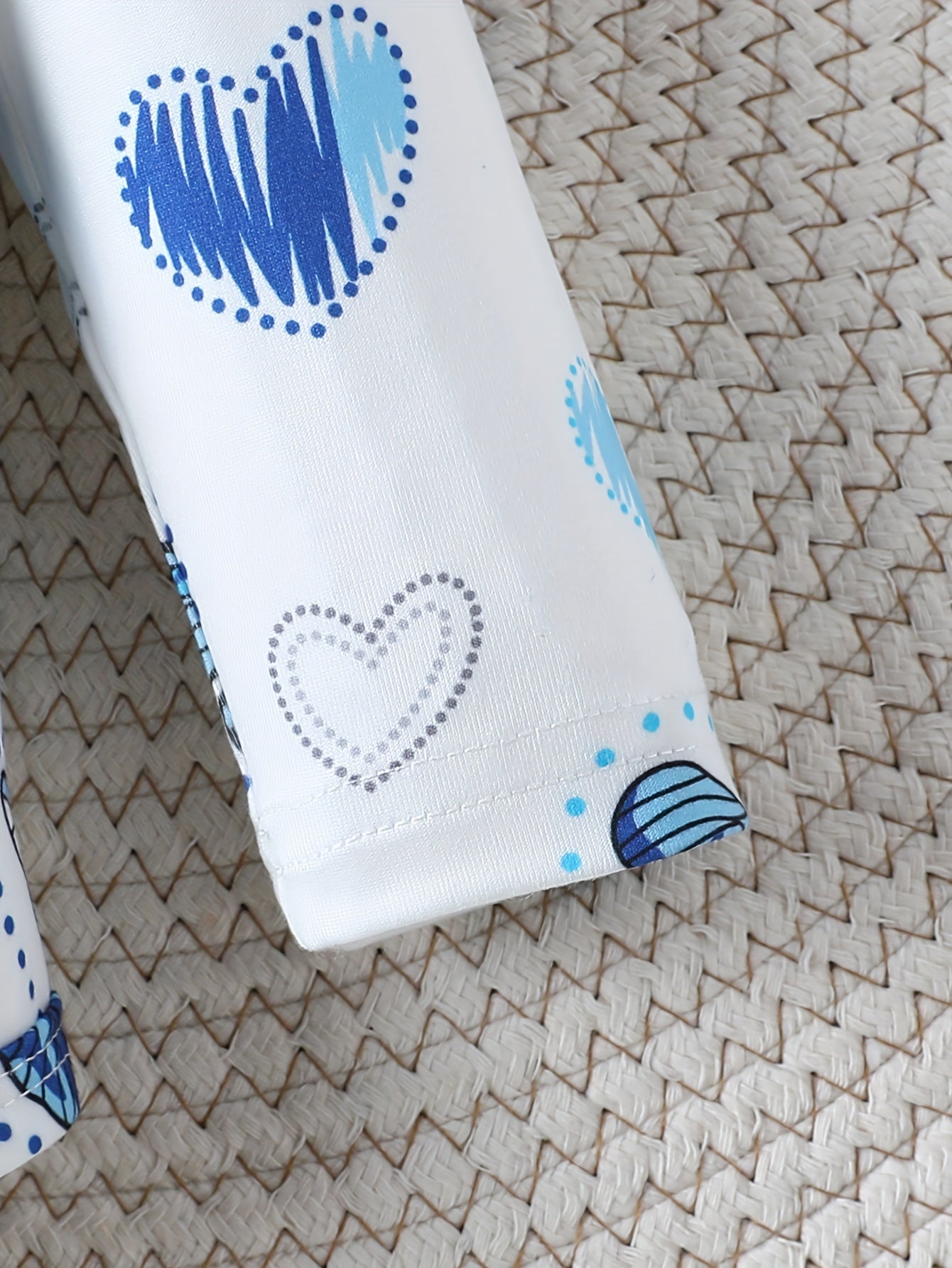 3pcs Set: Long-Sleeve Butterfly Love Print Flutter Hem