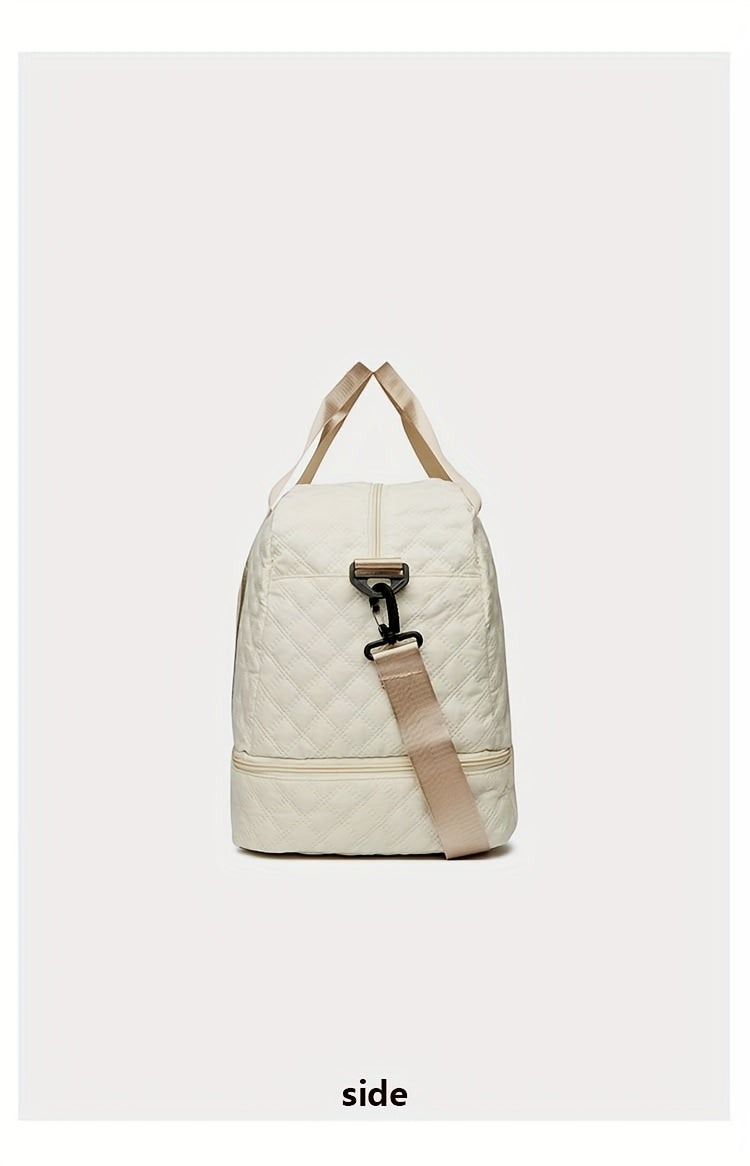 Designed for the modern woman on the move, this large-capacity travel bag combines luxury with practicality. Its spacious interior accommodates all your essentials, while specialized compartments—including wet/dry separation—keep belongings organized and fresh. Multiple side pockets offer easy access to small items, enhancing convenience during travel or workouts. Crafted with durable materials, this multifunctional tote is perfect for gym sessions, weekend excursions, or extended trips, ensuring style and functionality wherever you go. Experience seamless organization and elegant design that meets the demands of your active lifestyle.