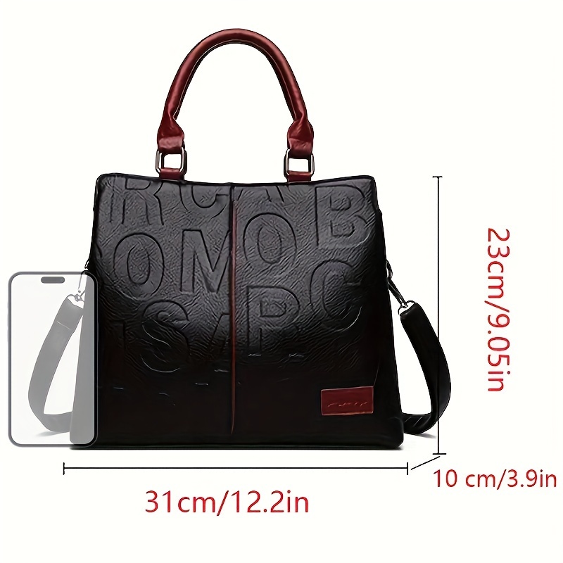 This women's fashion tote bag combines elegance and everyday practicality with its striking red and dark brown PU leather featuring a sophisticated embossed string pattern. Designed for casual wear, it offers a secure zip closure and a spacious interior lined with durable polyester, ensuring your belongings stay protected and organized. The removable shoulder strap provides versatile carrying options, allowing you to switch effortlessly between a hand-held tote and a comfortable shoulder bag. Crafted with care and recommended for dry cleaning only, this tote balances style with easy maintenance, making it an ideal accessory for enhancing any outfit with expert finesse.