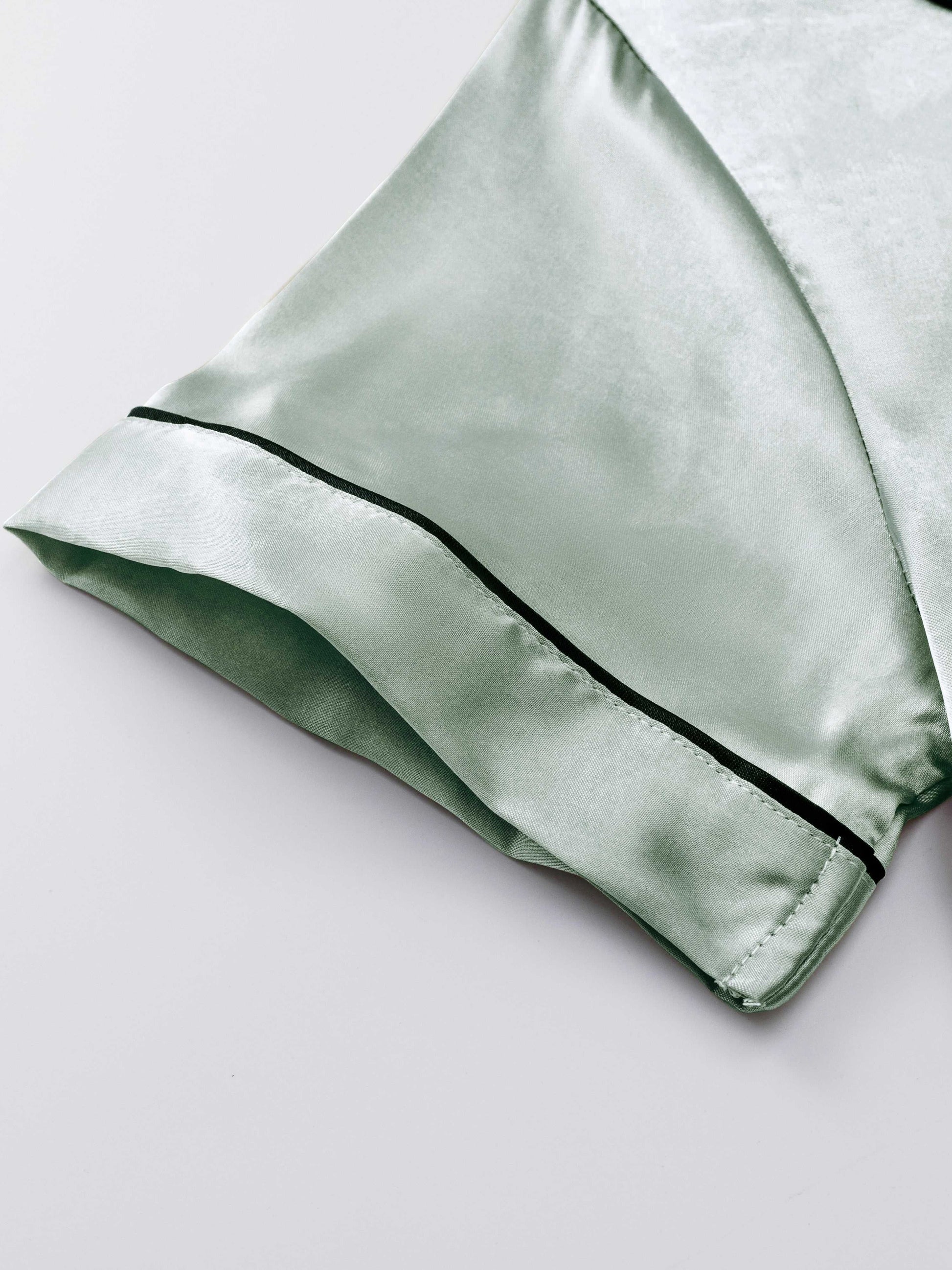 Elevate your sleepwear collection with this refined satin pajama set, engineered for both comfort and sophistication. The smooth, lustrous satin fabric drapes elegantly against your skin while regulating temperature throughout the night, ensuring restful sleep in any season. The short-sleeve design offers versatility—perfect for layering or wearing solo—while the solid colorway maintains a timeless aesthetic that complements any bedroom décor. The relaxed fit provides unrestricted movement, and the quality construction promises durability through countless washes. Ideal for those who refuse to compromise on style when it comes to intimate apparel.