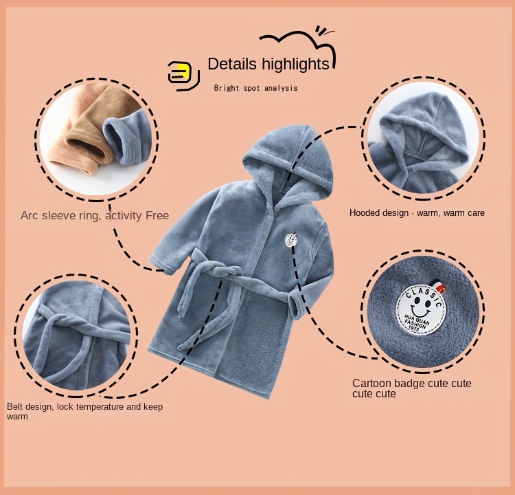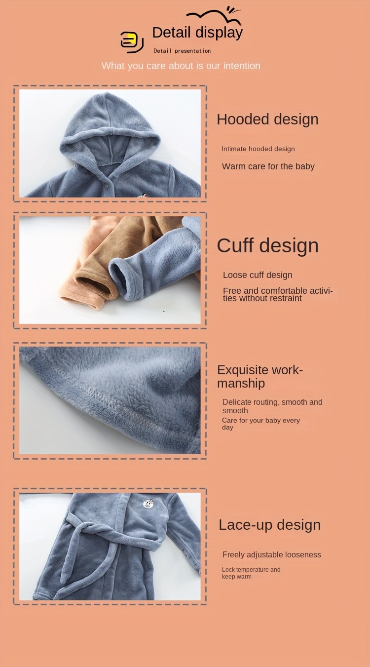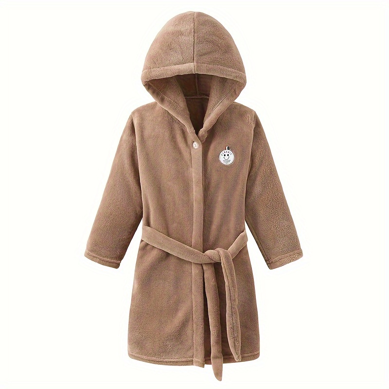 Youngsters Hooded Bathrobe combines comfort and practicality for children during cooler months. Crafted from 100% polyester flannel fleece, this robe delivers exceptional warmth while remaining lightweight and easy to care for. The long sleeves provide full coverage, while the attached hood offers additional protection from drafts. A functional placket closure ensures secure fastening, and the regular fit accommodates growing bodies comfortably. The solid color design suits any bedroom aesthetic and pairs effortlessly with sleepwear. Ideal for fall and winter seasons, this versatile robe transitions seamlessly from bedtime to casual lounging, making it an essential addition to any child's wardrobe. Machine washable for convenient maintenance.